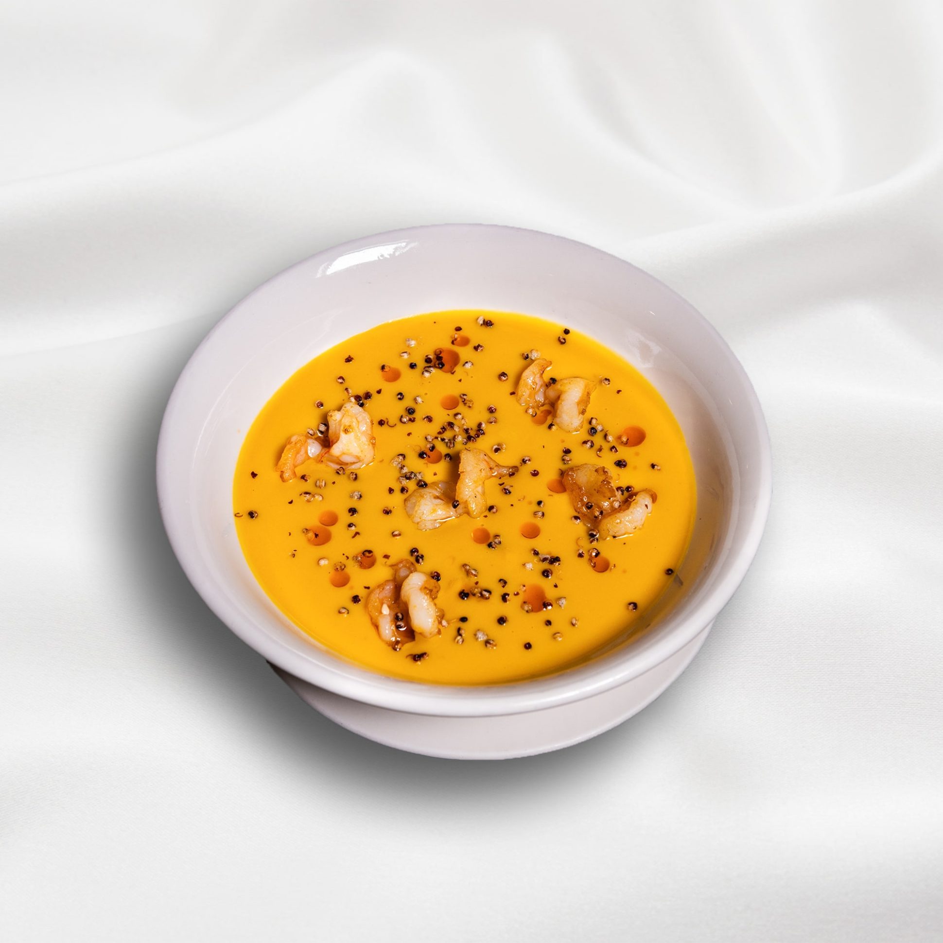 Pumpkin cream soup with shrimp